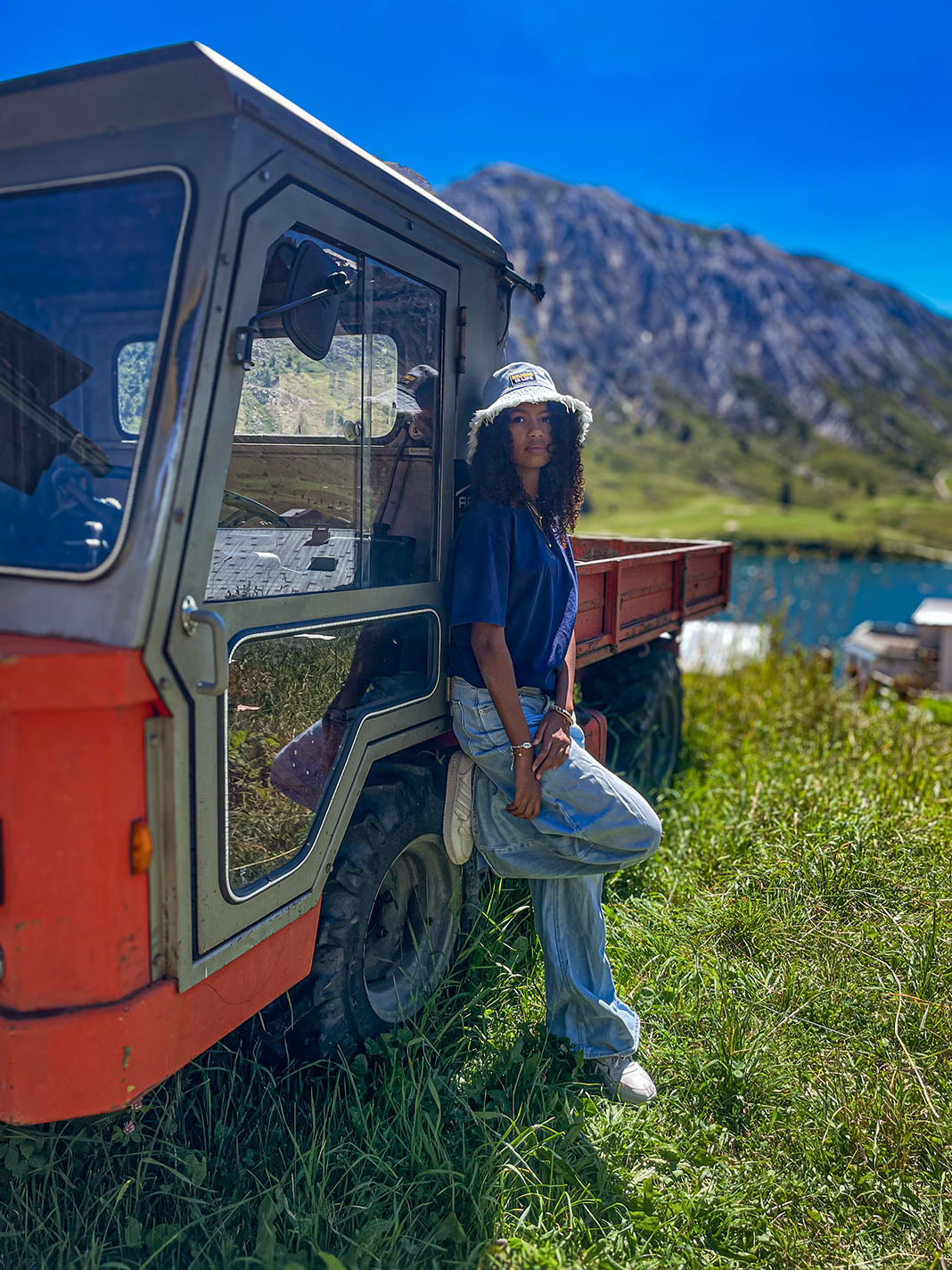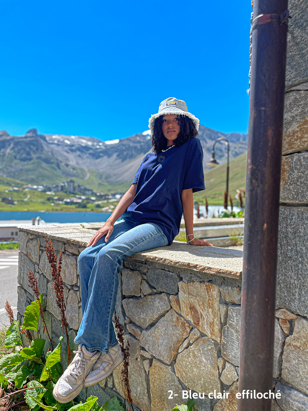 Bob en jean "Music is life", upcyclée avec ses patchs en édition limitée !