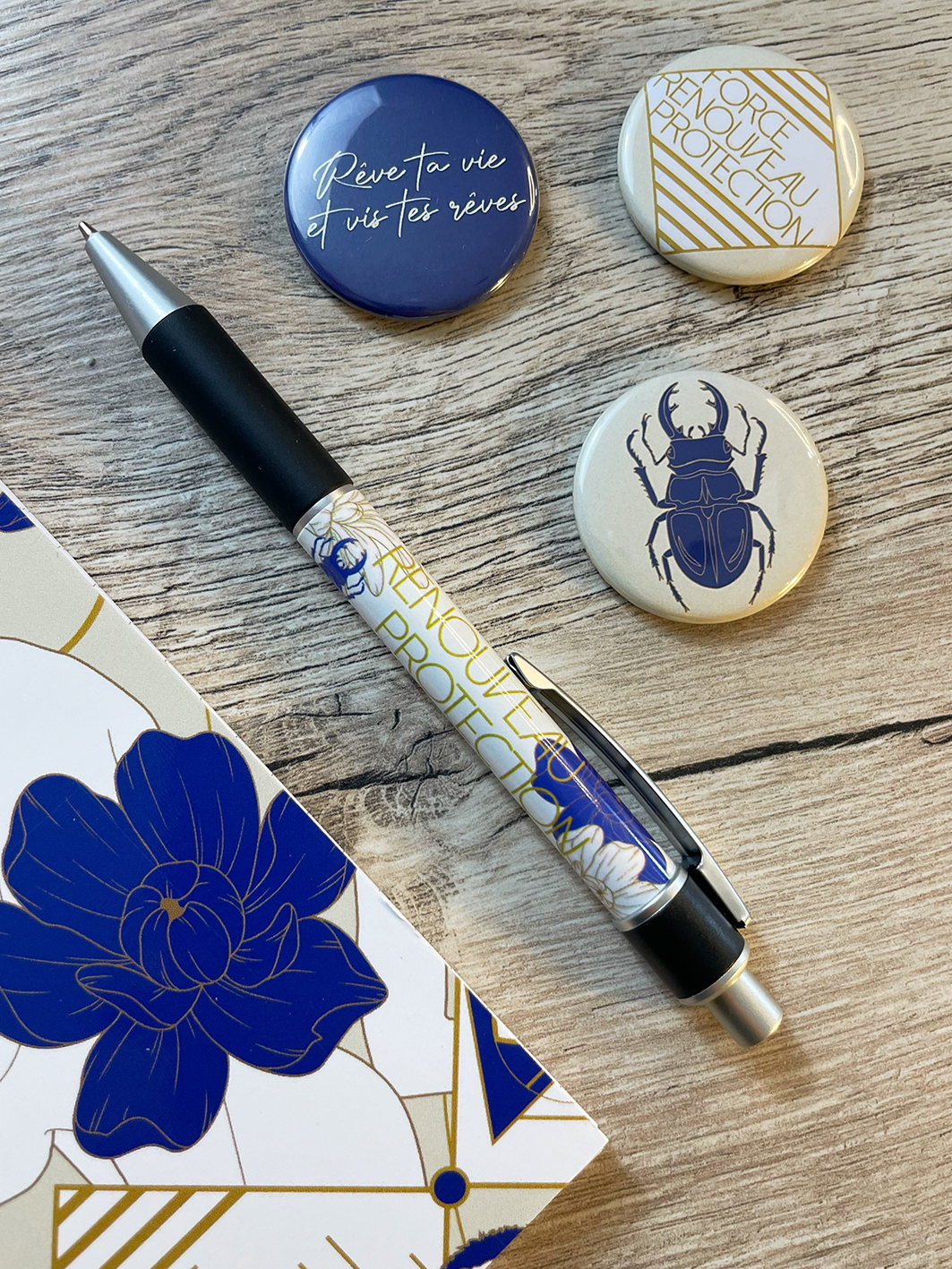 - Stylo encre noire et pointe rétractable (bouton-poussoir)
