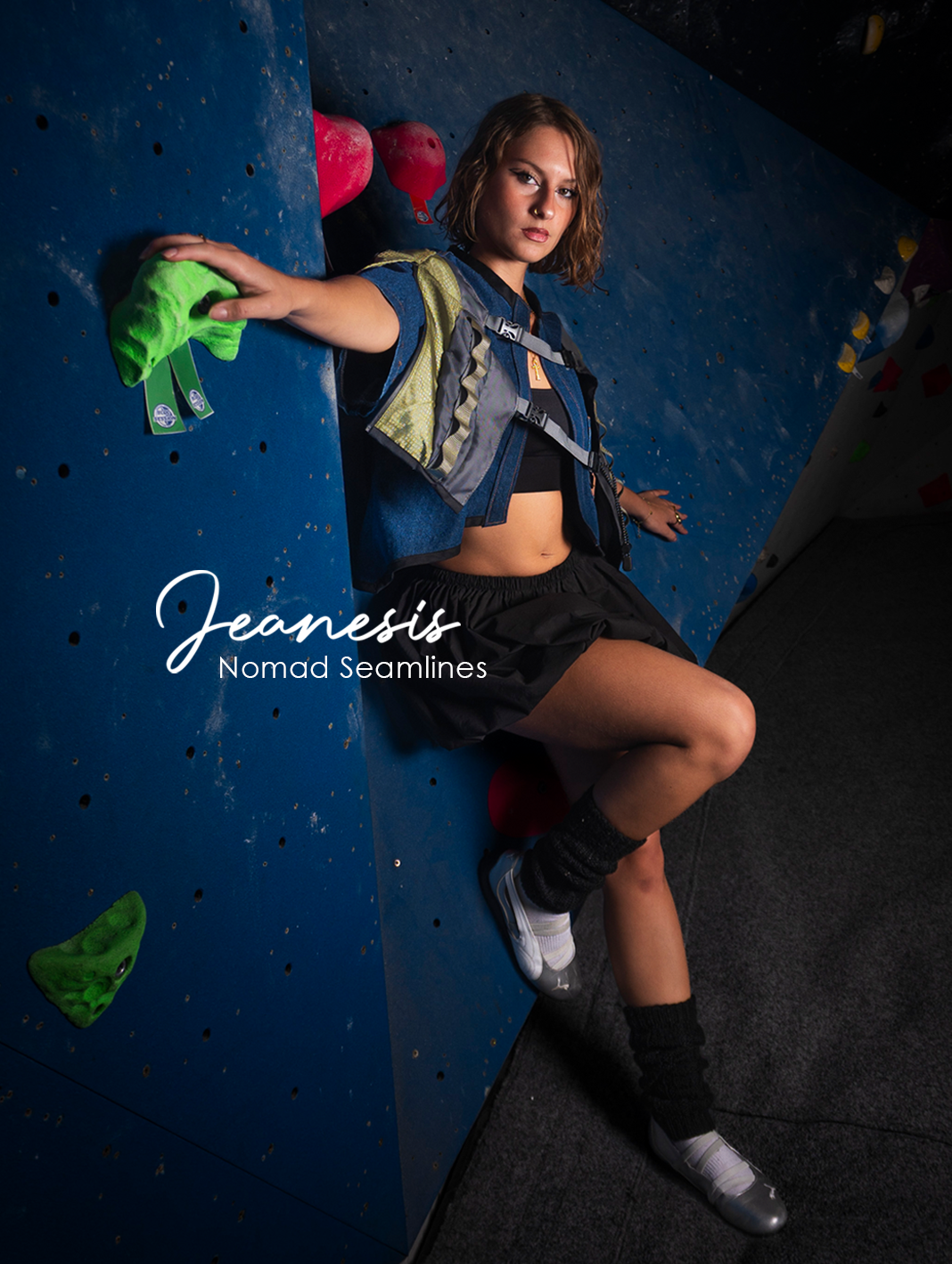 Mêlant jean et sac de randonnée, cette création est audacieuse, proche de la haute couture. Elle porte l'énergie de ses lieux de voyage, avant tout le Mont Olympe, qui m'a beaucoup inspiré.