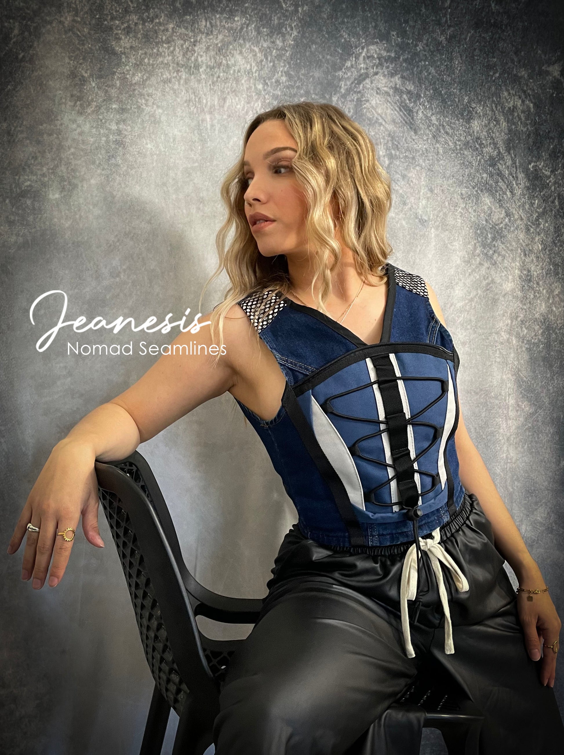 Ce bustier upcyclé dessine la silhouette et donne à chaque tenue une touche audacieuse.