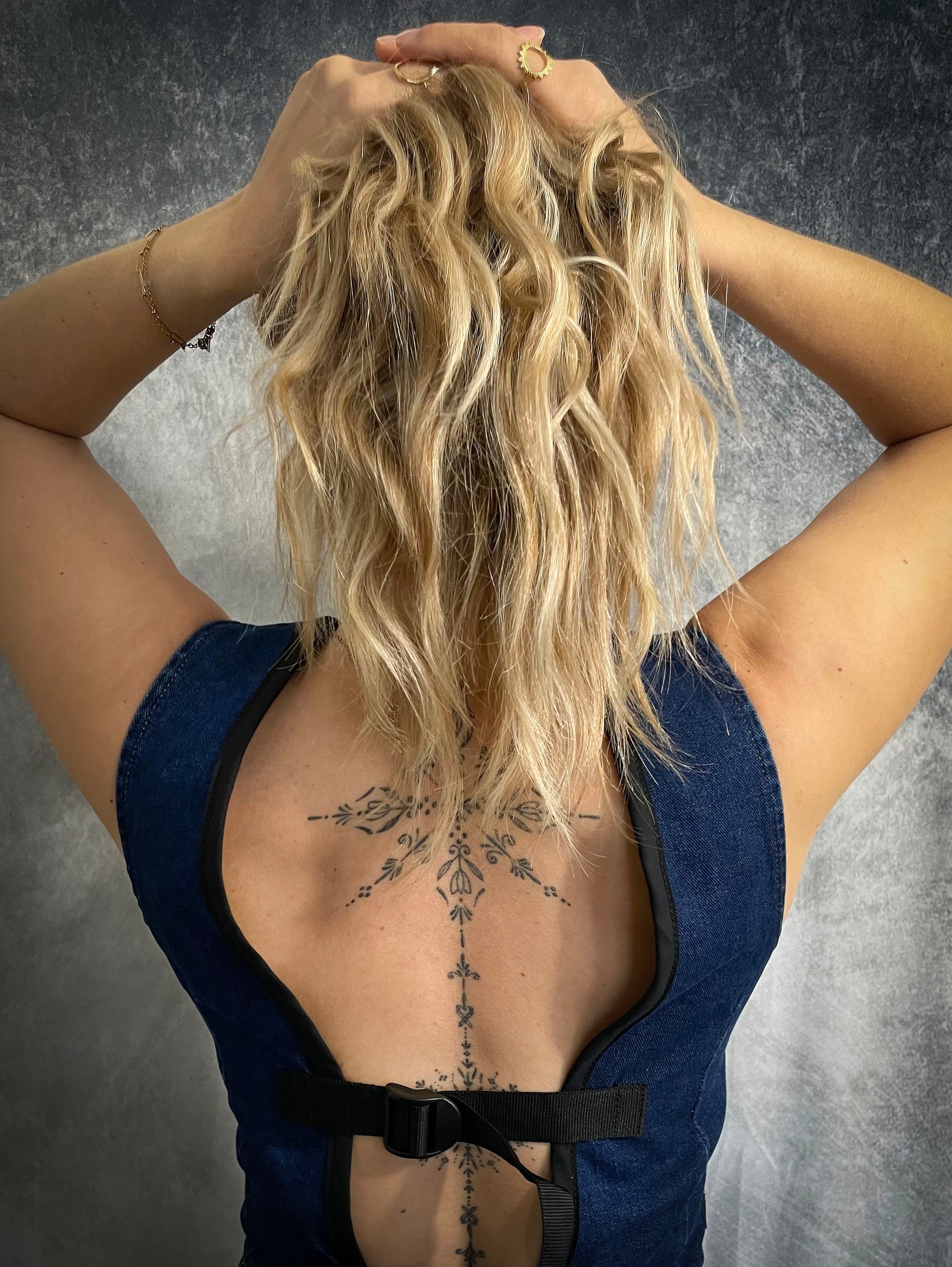 Mêlant jean et sac de randonnée, cette création porte l'énergie de ses lieux de voyage, avant tout la Thaïlande.